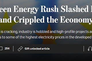 Europe’s Green Energy Rush Slashed Emissions—and Crippled the Economy - Well, lookee here: The climate alarm boosters at the WSJ have finally figured…
