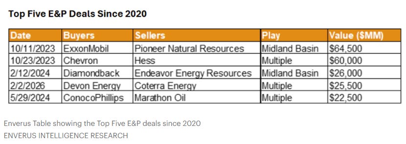 Under the deal’s terms, Coterra shareholders will receive .70 shares of Devon Energy stock in exchange for each owned share, with Devon remaining as the surviving company. With an equity value of $25.5 billion, Enverus Intelligence Research principal analyst Andrew Dittmar says the merger ranks as the fourth largest U.S. upstream M&A deals since 2020.
