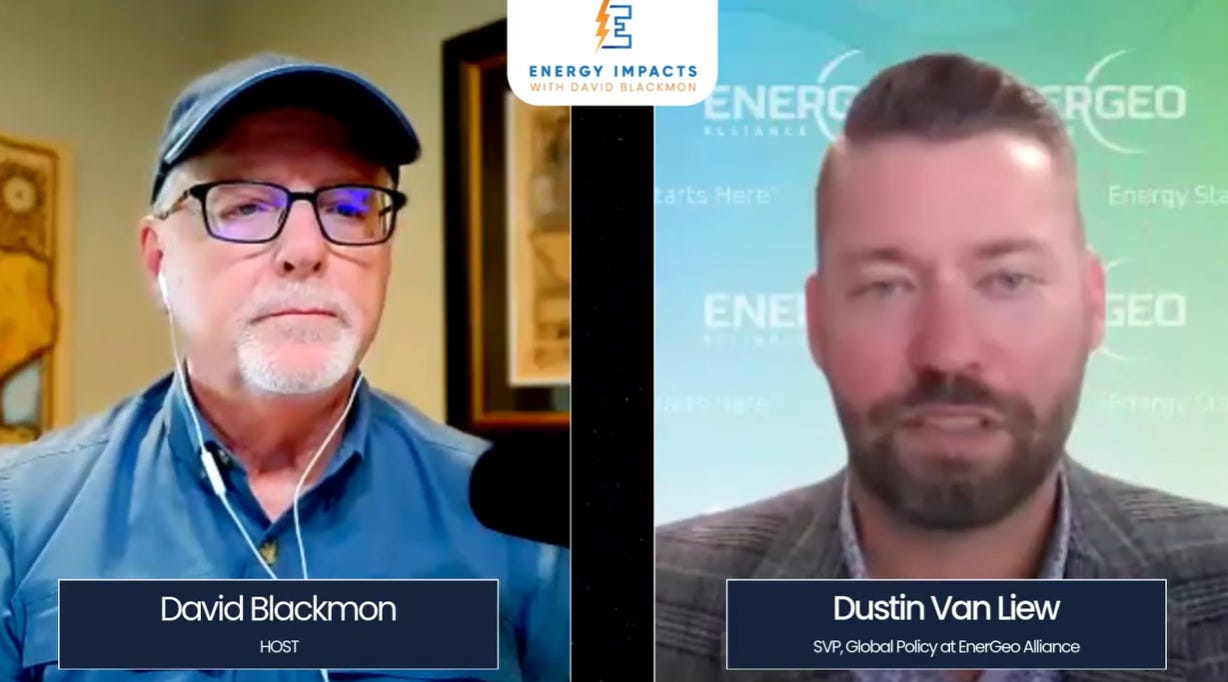 In this episode of Energy Impacts, David Blackmon talks with Dustin Van Liew, Senior VP of Global Policy at Energeo Alliance, about how geoscience supports offshore energy projects and the policy hurdles that come with it. Van Liew explains the importance of seismic surveys for oil, gas, and offshore wind, addresses common misconceptions about their imp…
